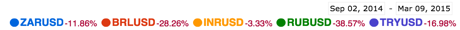 Obviously each country has a different story, Dilma Rousseff has her back to the wall, check this FT story about Brazil and their woes: Brazilian real falls to 11-year low over risk to austerity plan. Socialism, bribes, pals, it turns out that eventually it comes back to bite you in the bum when politicians try and manage the economy, it does not work. The only reason why I point this out is that many people are "thinking insular", meaning that they view the weakness of the Rand as a result of the local economy rather than Dollar strength. Make no mistake, "things" could be a lot better here, we are however not Turkey, not Brazil and not Russia.