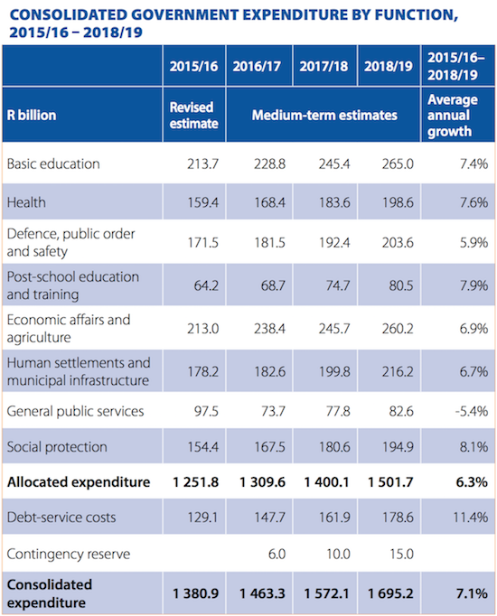 And here is how your taxes will be spent. The biggest component in the budget is education with basic education taking 15% of the budget and then servicing debt being the fasted growing expense going forward. A ratings downgrade would mean that the debt servicing expense will grow even faster.